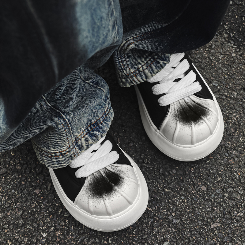 黑白喷绘贝壳头鞋子男厚底增高休闲低帮板鞋大头鞋秋冬小众情侣鞋