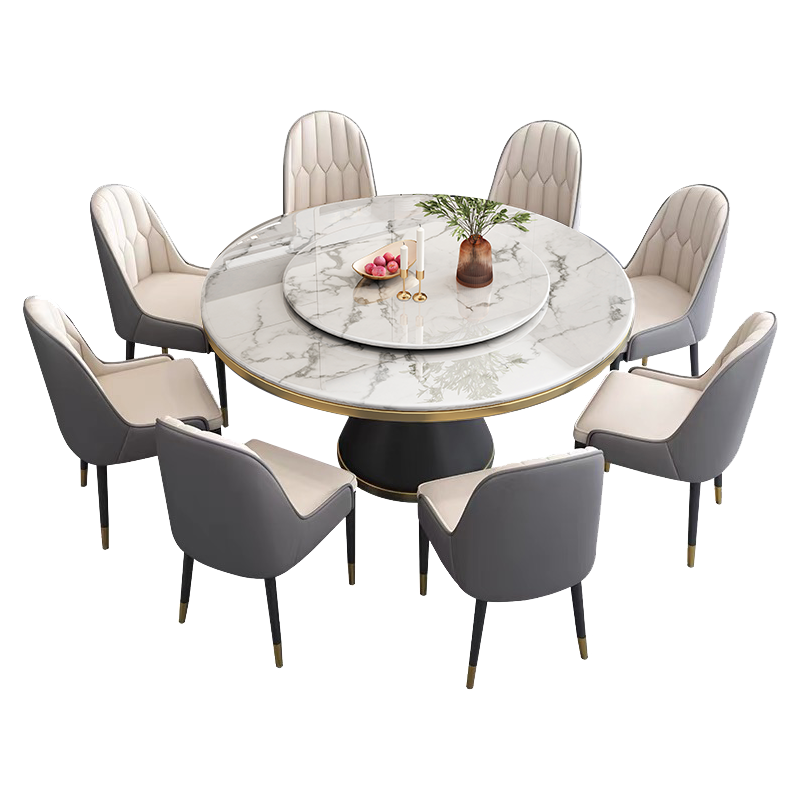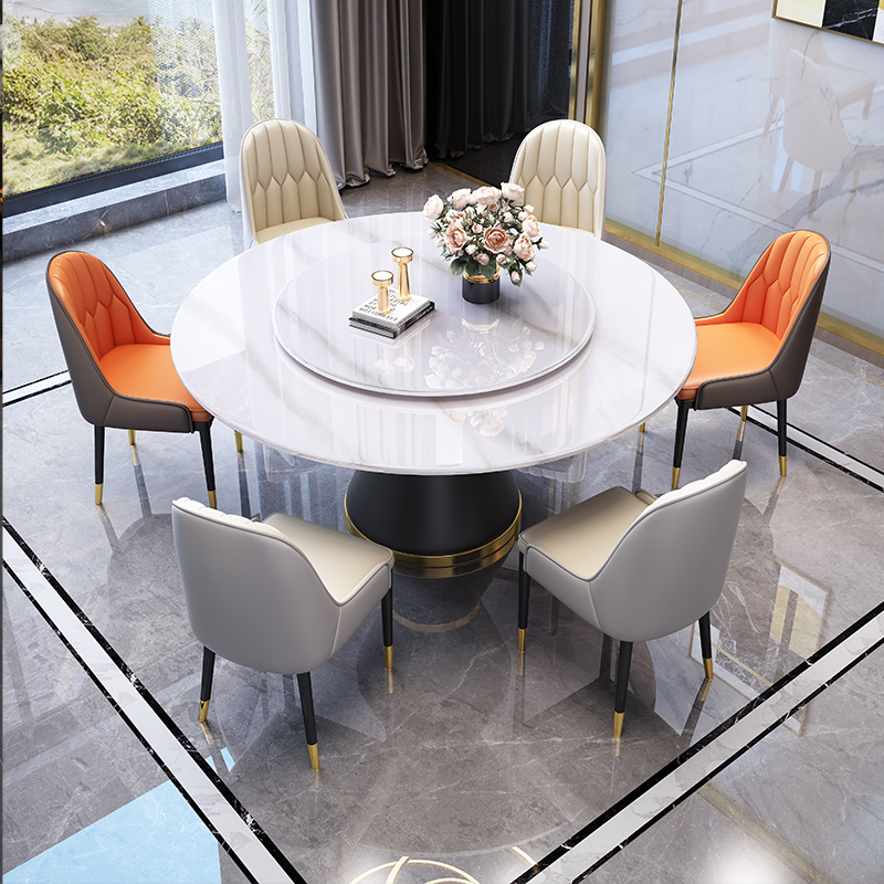 岩板餐桌椅组合现代简约2025新款圆形酒店家用小户型大圆桌饭桌子