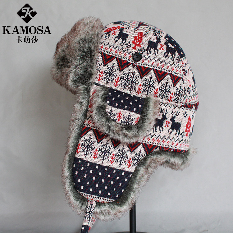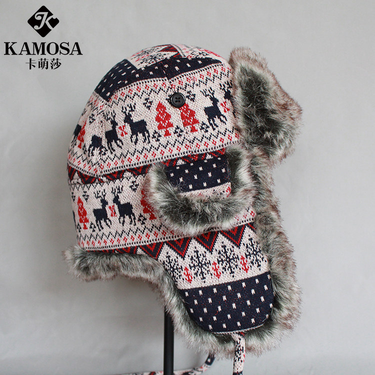 KAMOSA 新款雷锋帽女款防寒骑行加厚保暖护耳东北帽冬季韩版针织