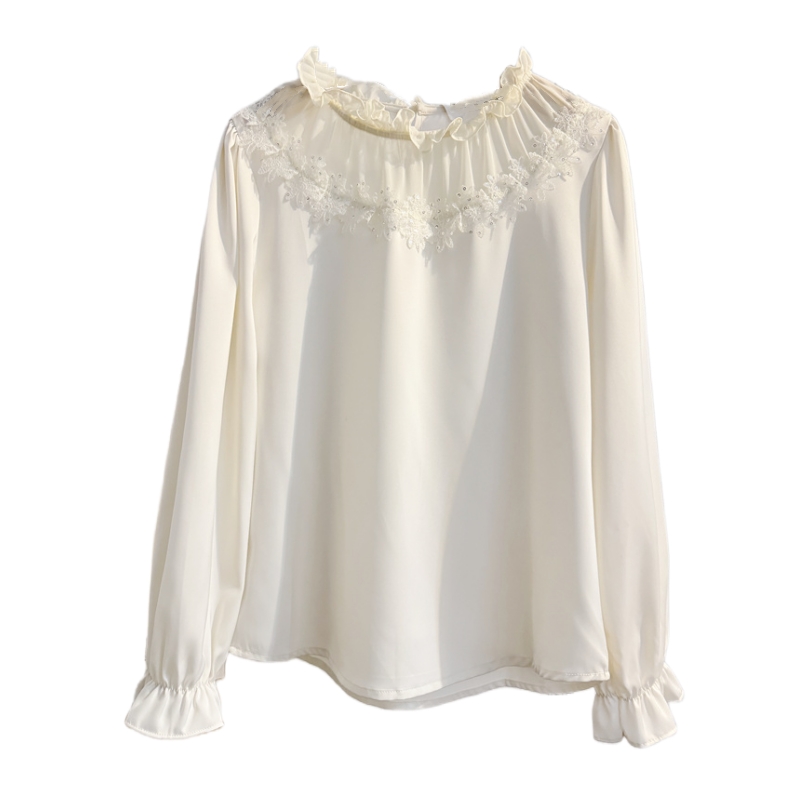 蕾丝拼接花边立领缎面长袖衬衫女2025春季设计感气质法式小衫上衣