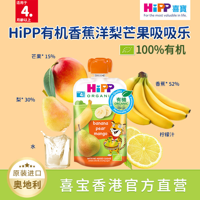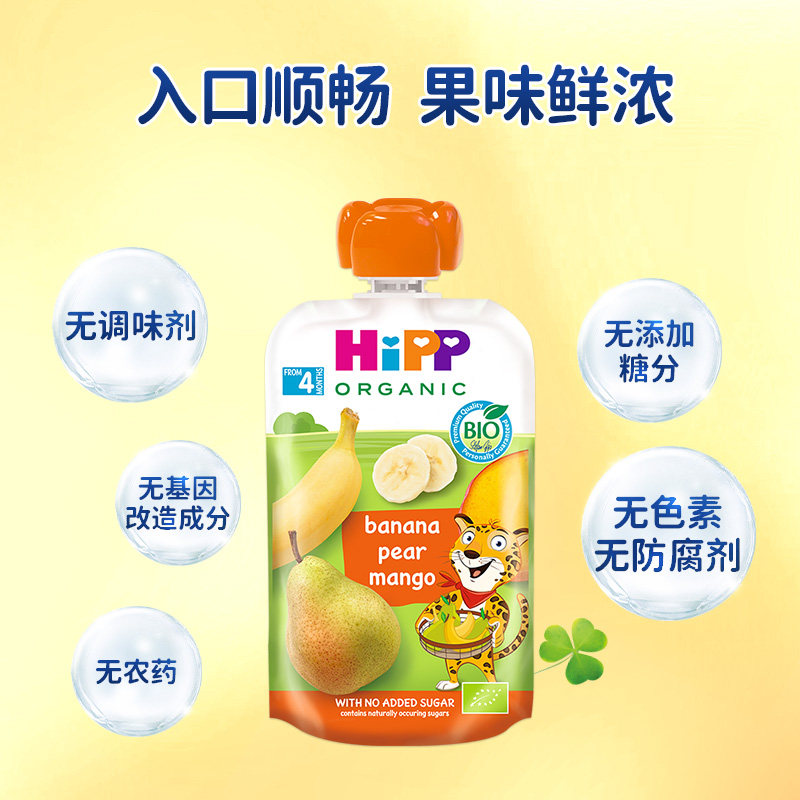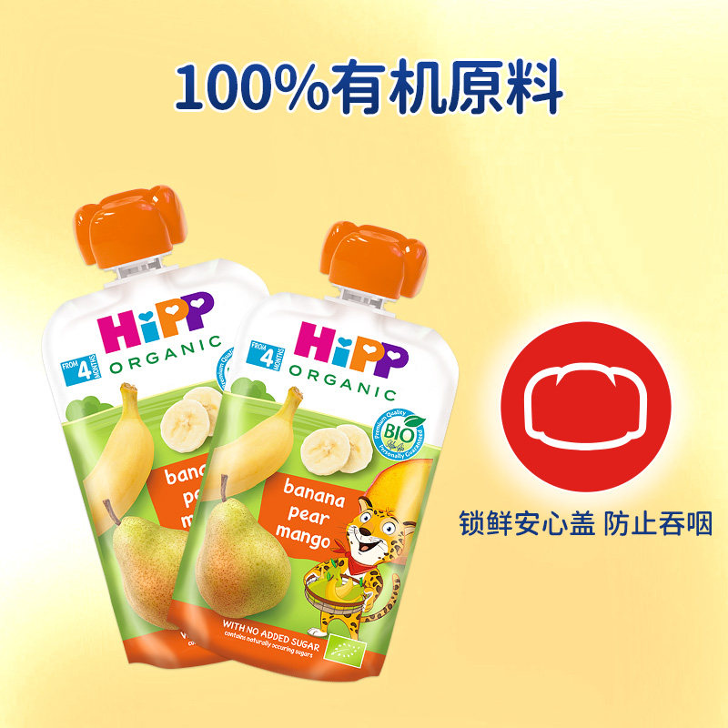 HiPP喜宝有机香蕉洋梨芒果水果泥婴幼儿4个月营养辅食零食吸吸乐