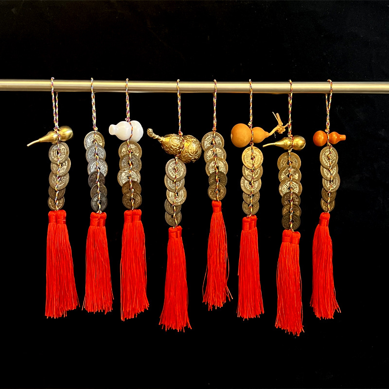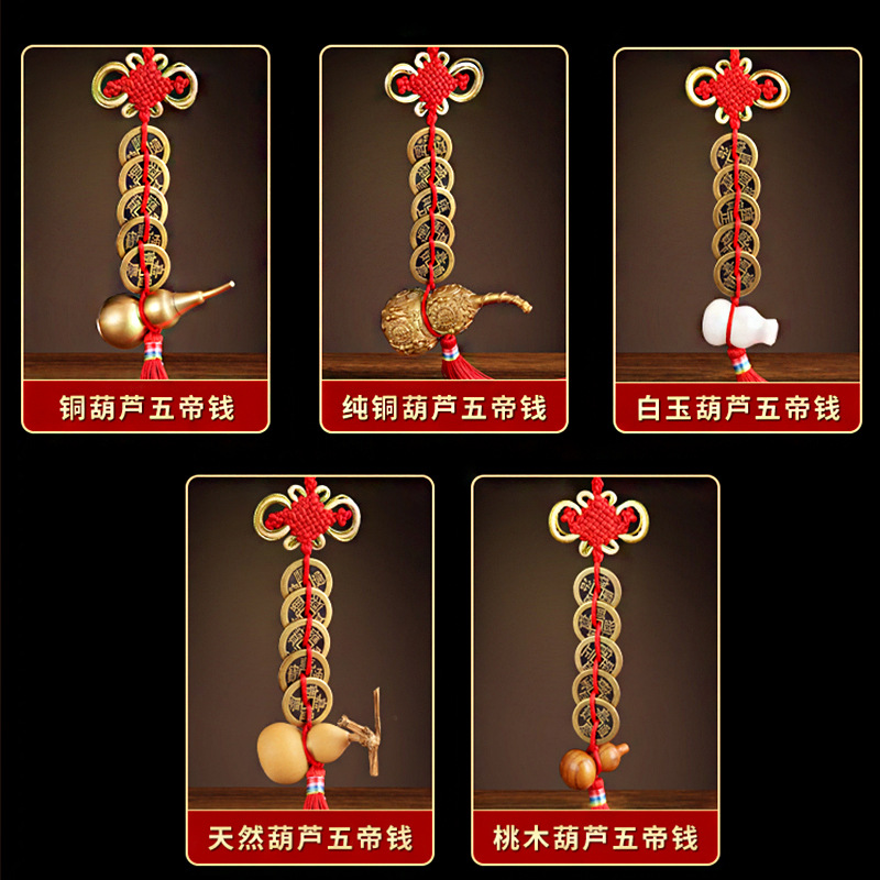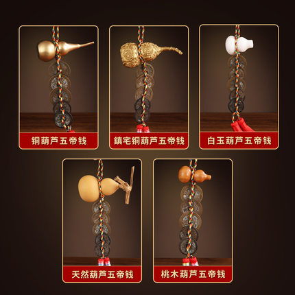 黄铜葫芦五帝钱旧真铜钱挂件居家摆件老铜钱六帝钱五帝钱摆件