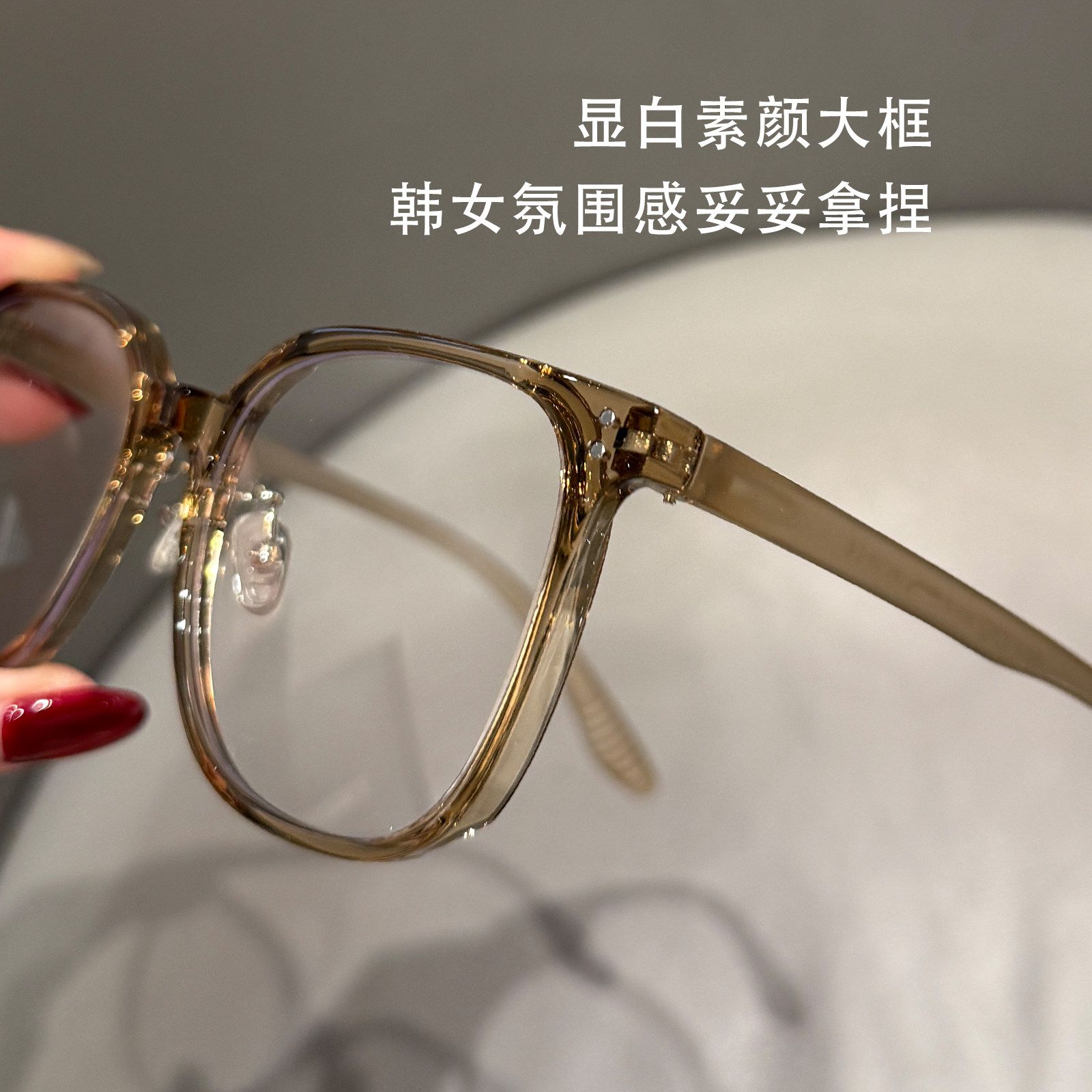 超大框近视眼镜女专业可配度数素颜显白框显瘦冷茶色防蓝光眼睛框