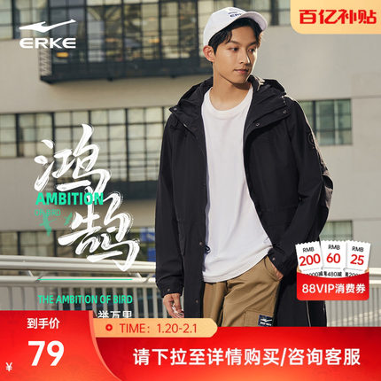 鸿鹄丨鸿星尔克风衣男春秋男士国潮复古中长款防风运动外套大衣男