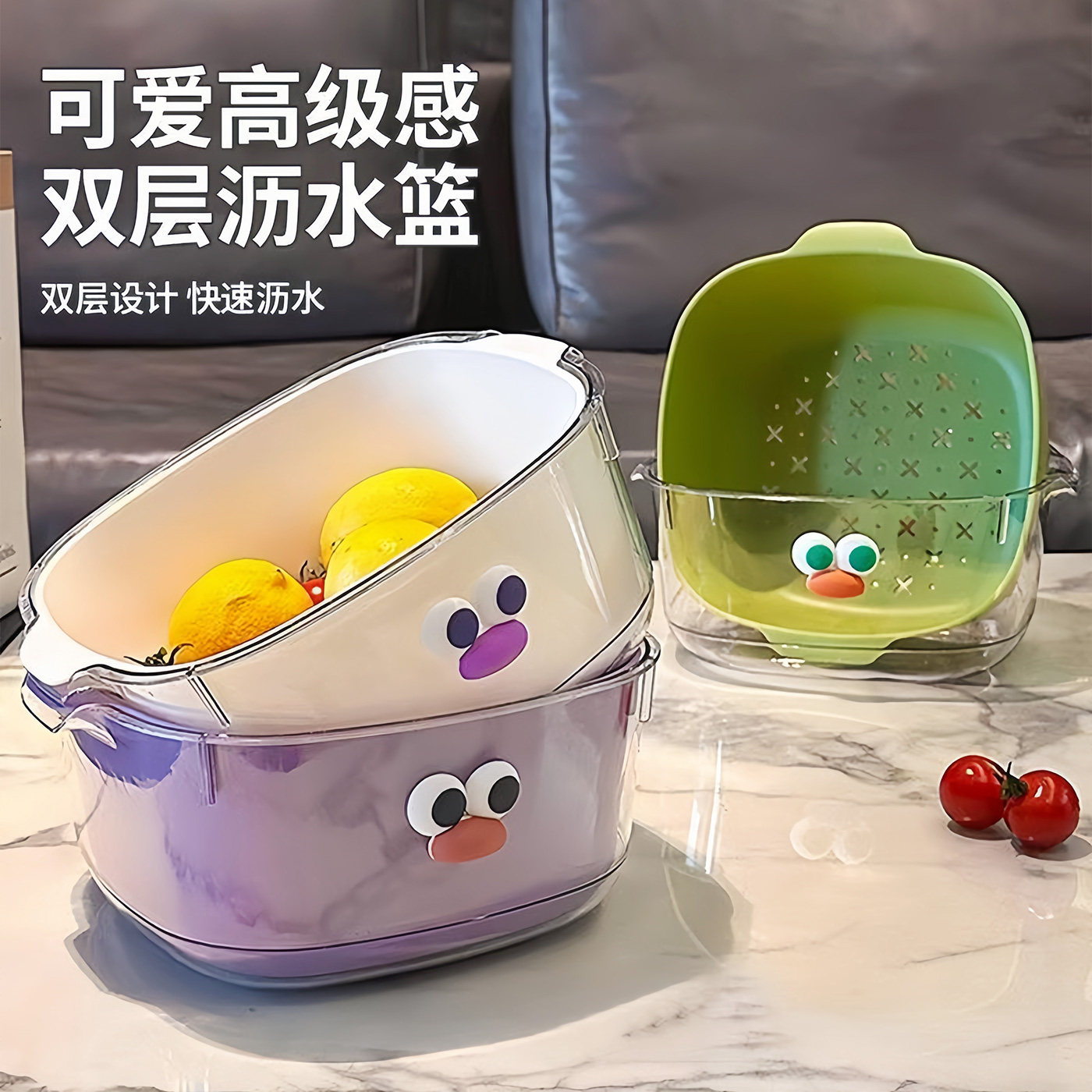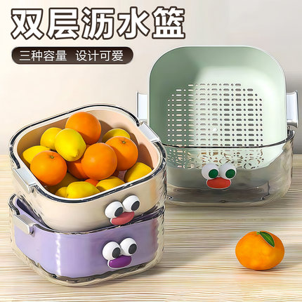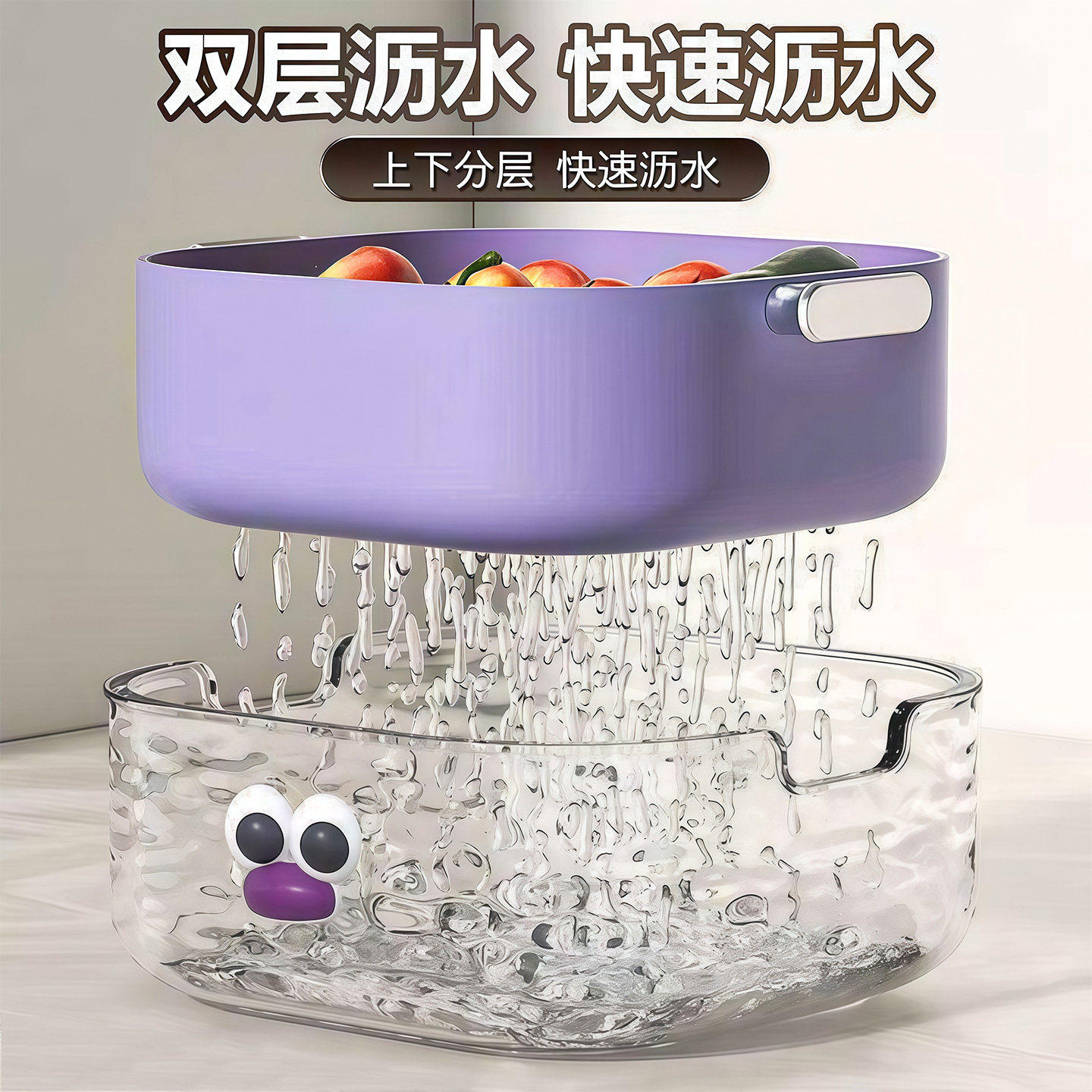 双层洗菜盆沥水篮家用可爱水果篮子清洗滤水二合一加厚果盘洗菜篮