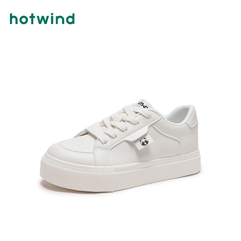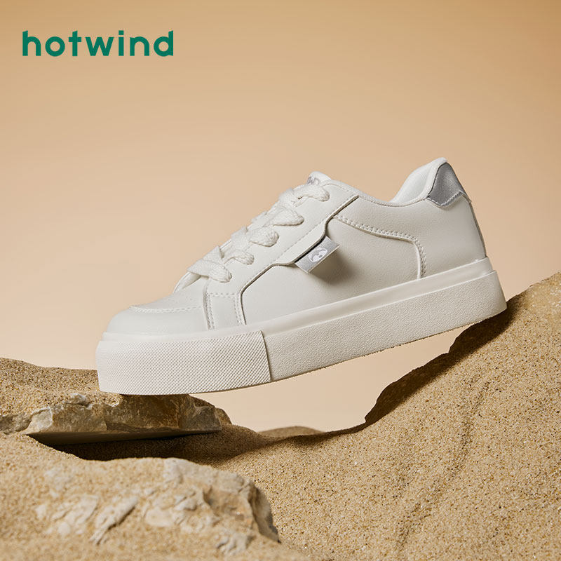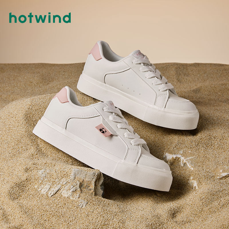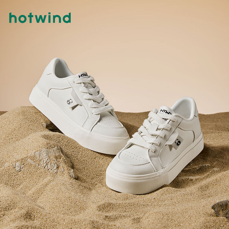 热风秋季新款女士百搭简约圆头小白鞋运动休闲松糕底板鞋