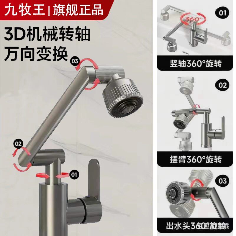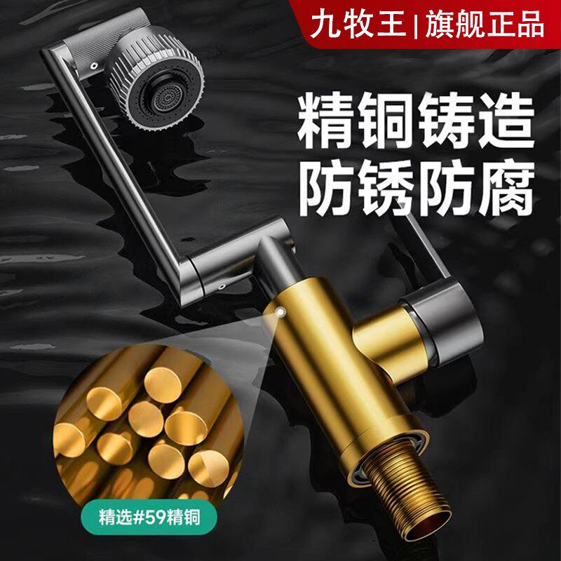 九牧王全铜万向旋转水龙头机械臂卫生间厨房冷热水龙头洗脸盆面盆
