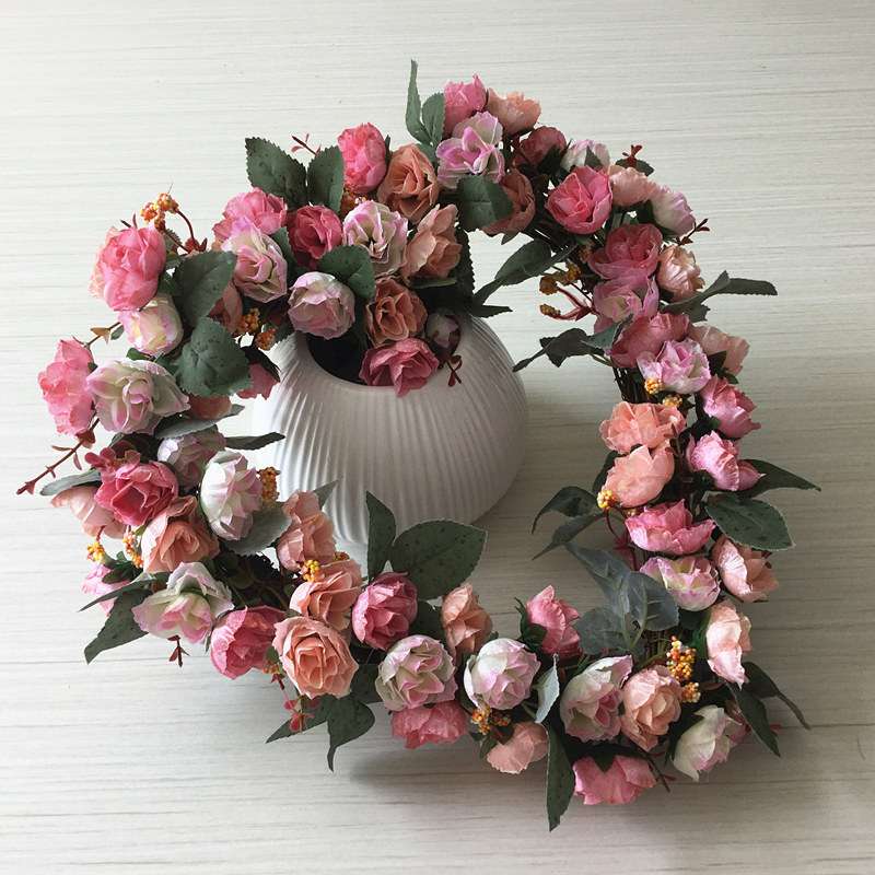 欧式仿真玫瑰花心形花环婚房婚庆开业挂饰花圈路引装饰家居假花