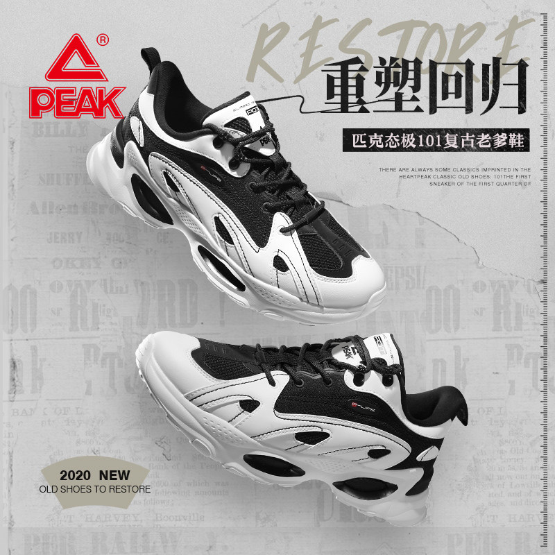 匹克态极老爹鞋男101复古运动鞋男2024春夏皮革网面休闲女鞋耐磨