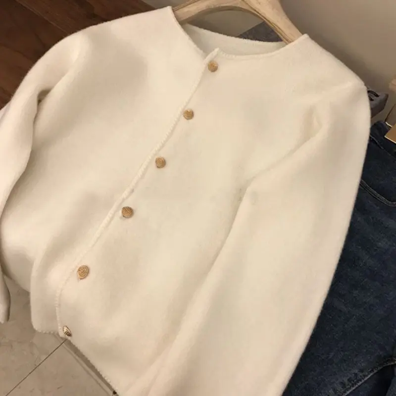 秋冬新款100纯羊毛圆领羊毛开衫女针织宽松外套洋气毛衣韩版上衣
