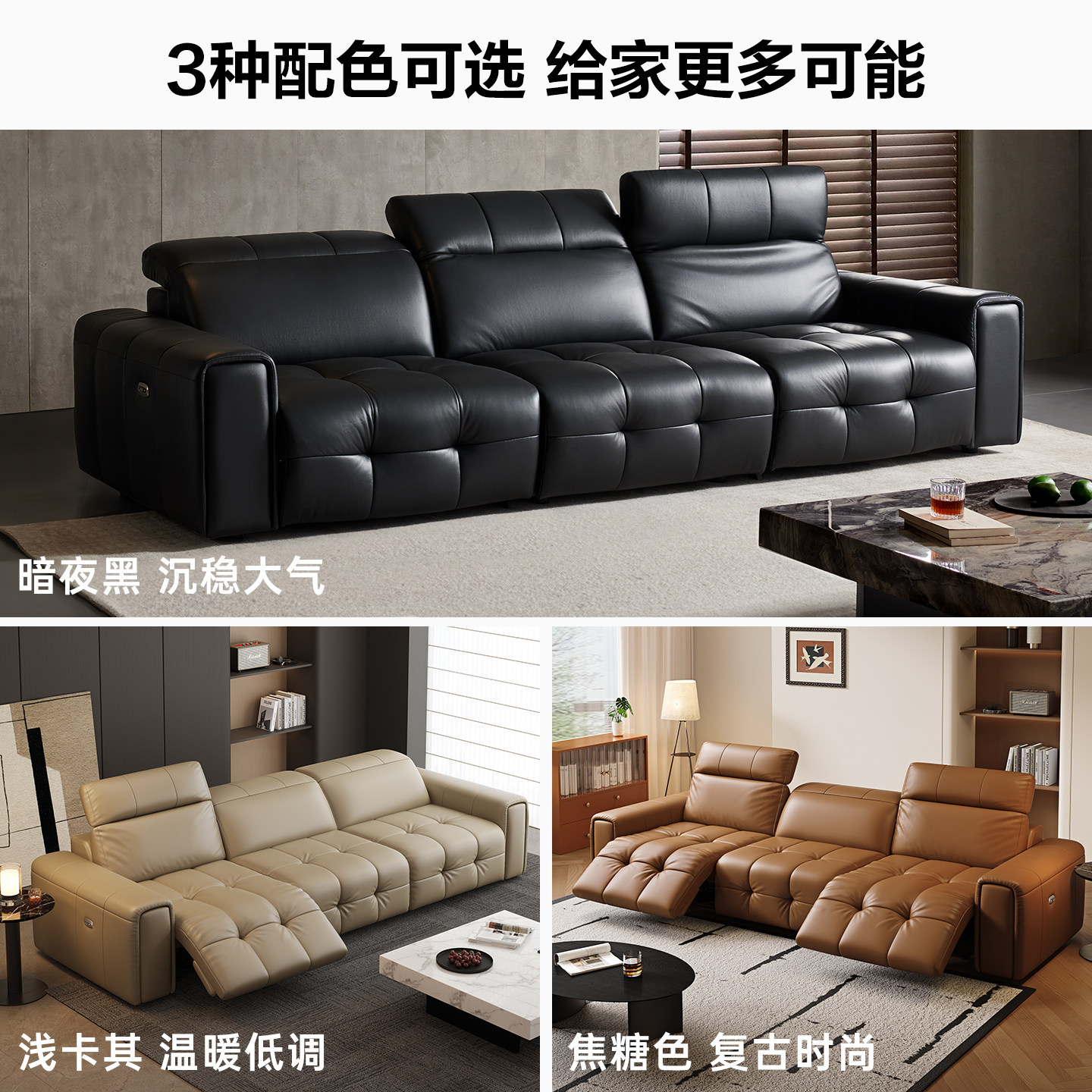 全友家居零靠墙电动真皮沙发新款意式轻奢客厅黑色直排劳伦斯沙发