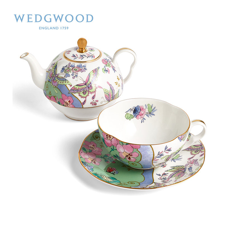 WEDGWOOD威基伍德花间舞蝶一人悦享茶具三件组骨瓷欧式子母壶杯碟