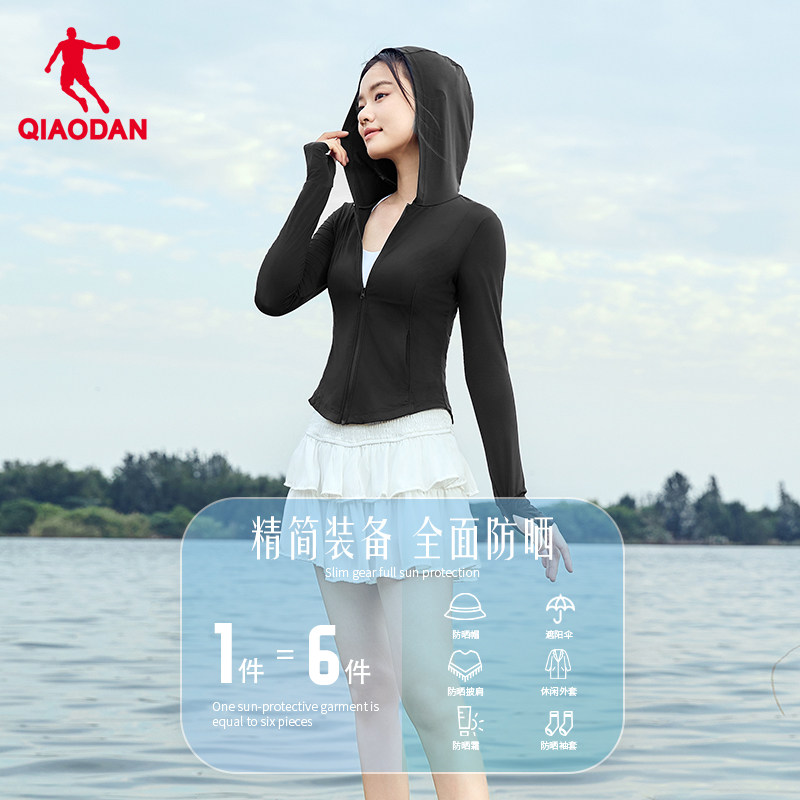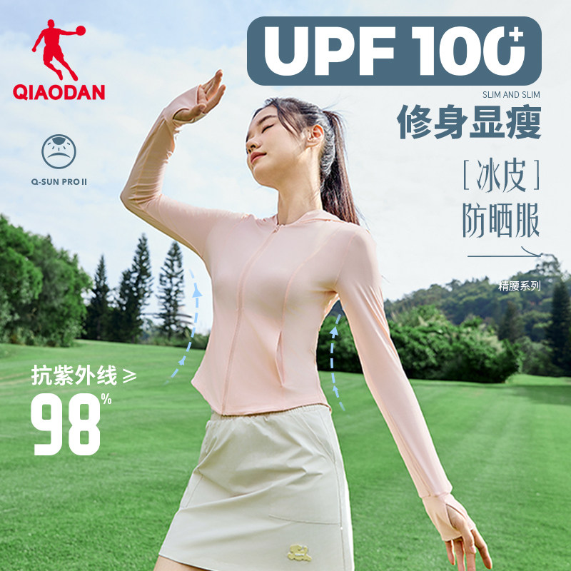 乔丹冰皮防晒服女UPF100+夏季新款腰精修身防紫外线轻薄女士外套