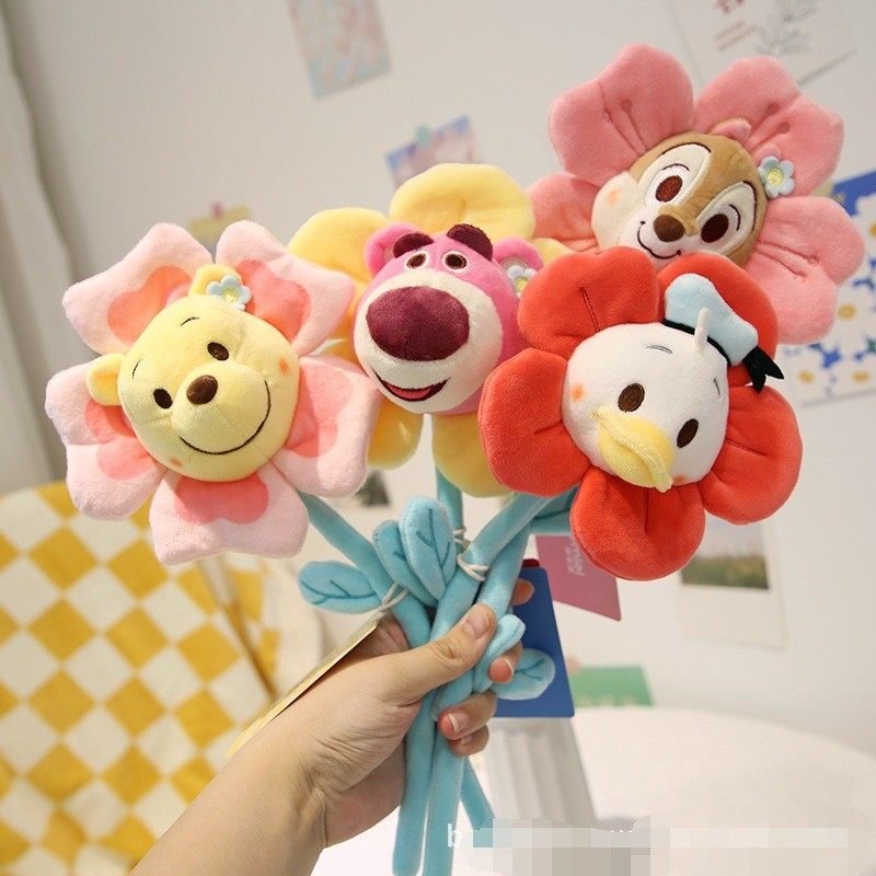 现货正版迪士尼小花草莓熊维尼熊奇奇唐老鸭女孩花束毛绒花束礼物