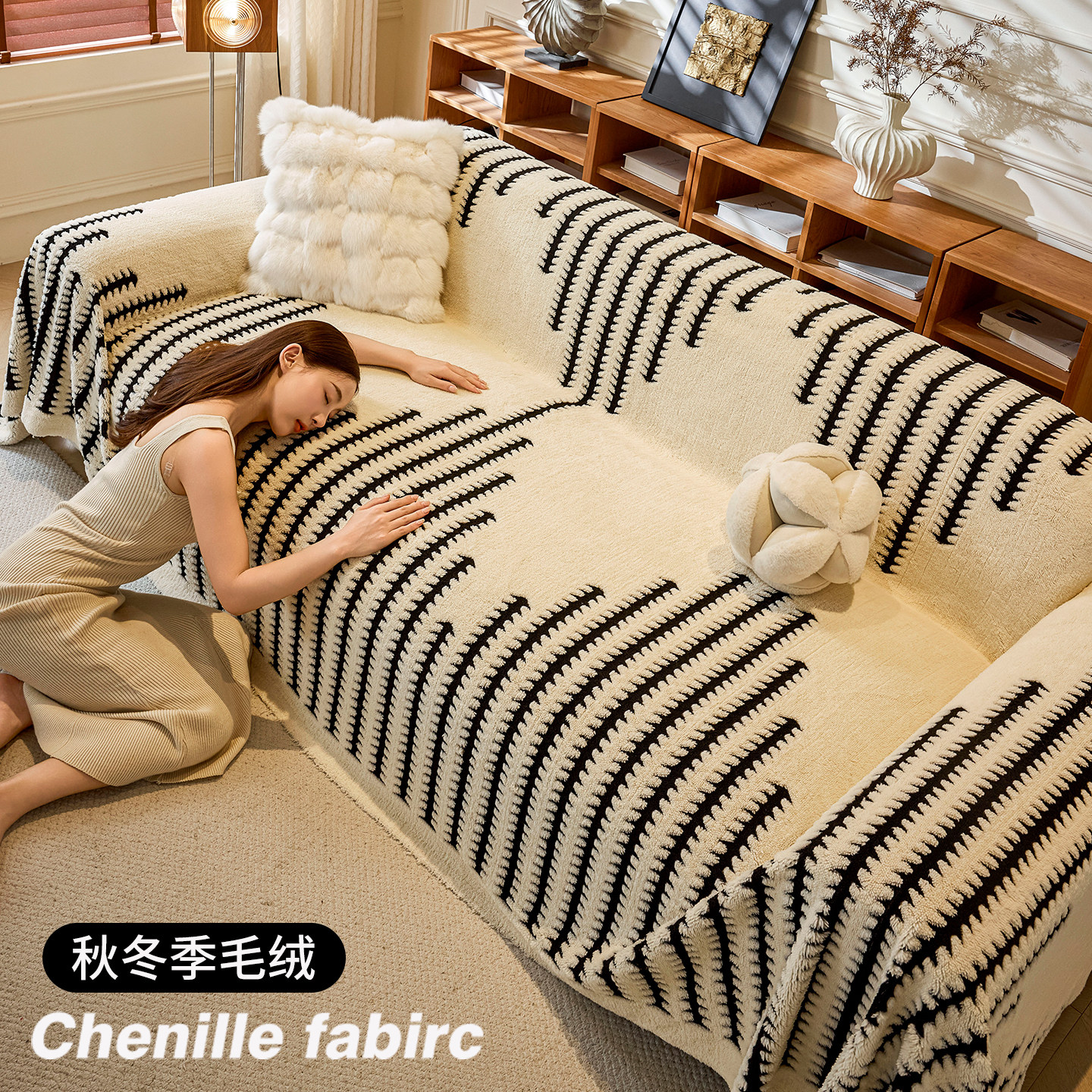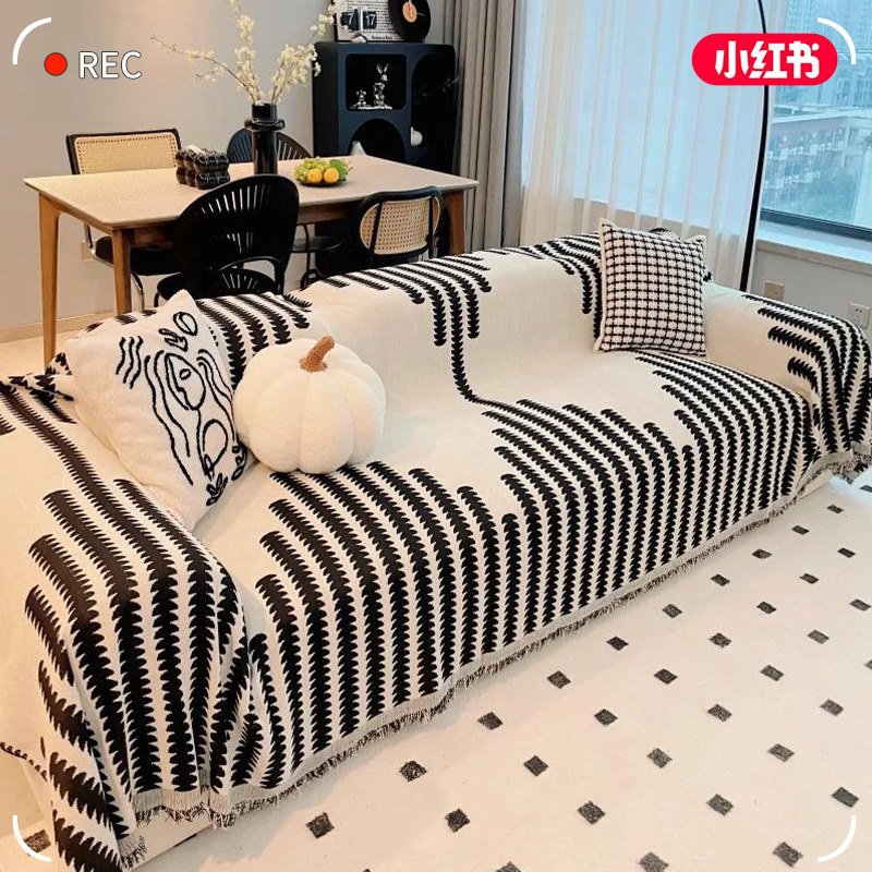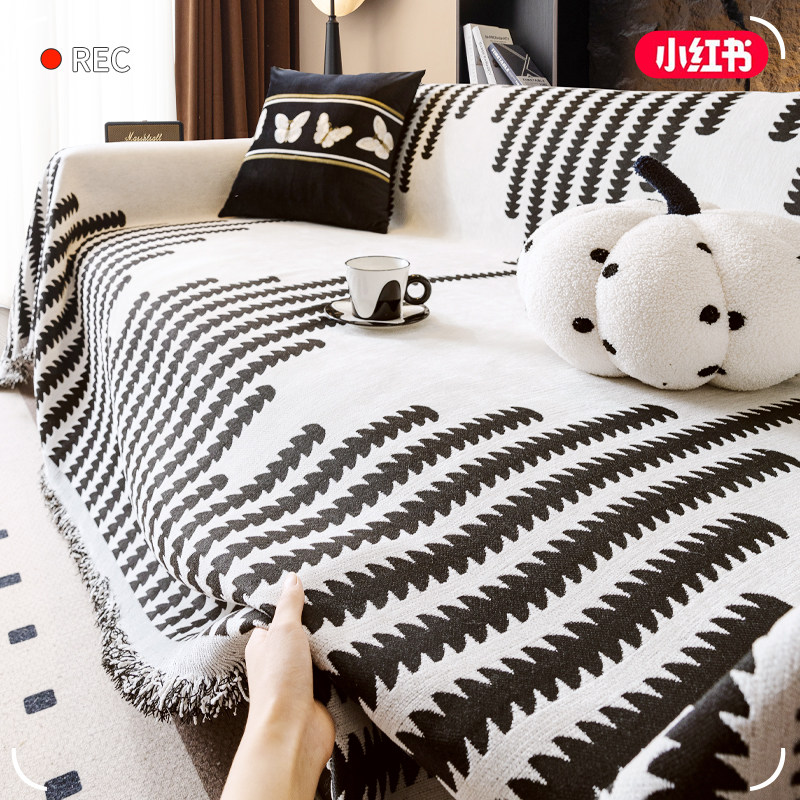 黑白轻奢沙发盖布四季通用沙发巾高级感沙发套罩2025新款坐垫盖毯