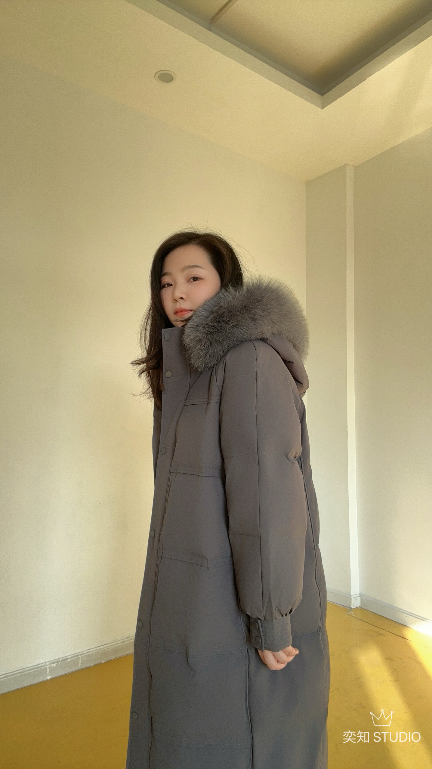 2024冬季新款狐狸毛领羽绒服女中长款过膝加厚保暖白鸭绒外套