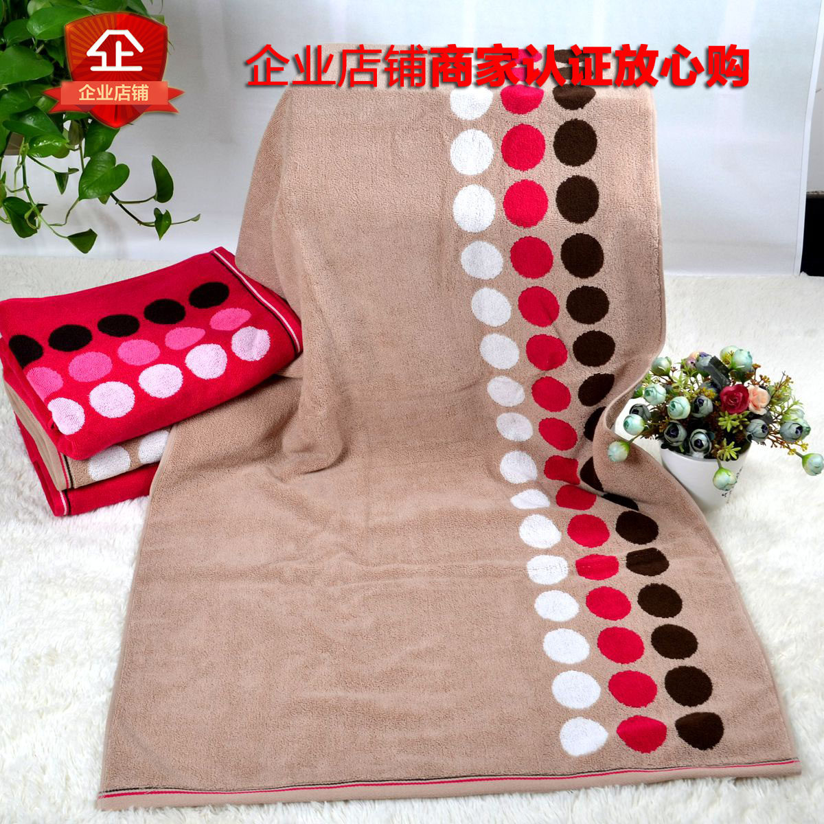 金号成人棉质浴巾加大加厚圆点点全棉小毛巾被时尚大气柔软吸水