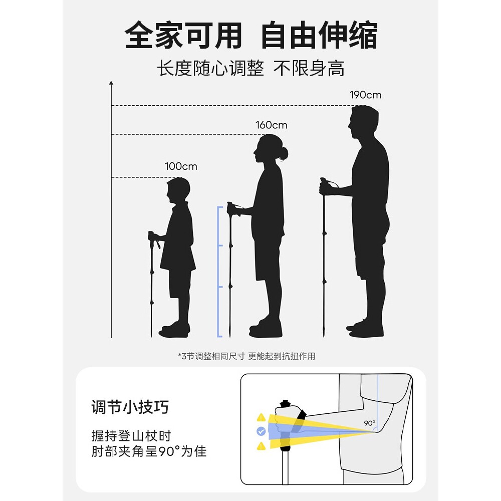 黑钻官网正品2026新款登山杖超轻伸缩款轻便爬折叠防滑杖铝合金
