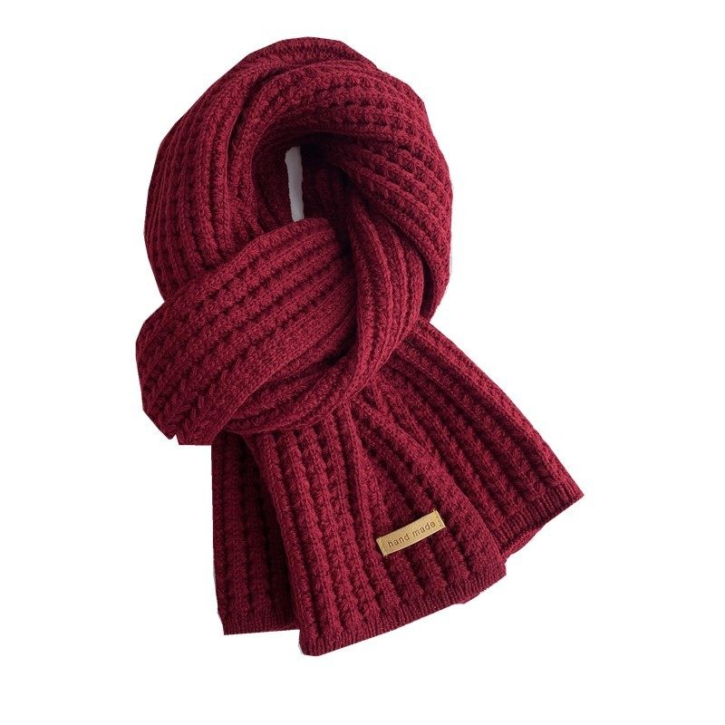 韩版冬季纯色安可拉红针织毛线围巾酒红色情侣保暖围脖送男女朋友