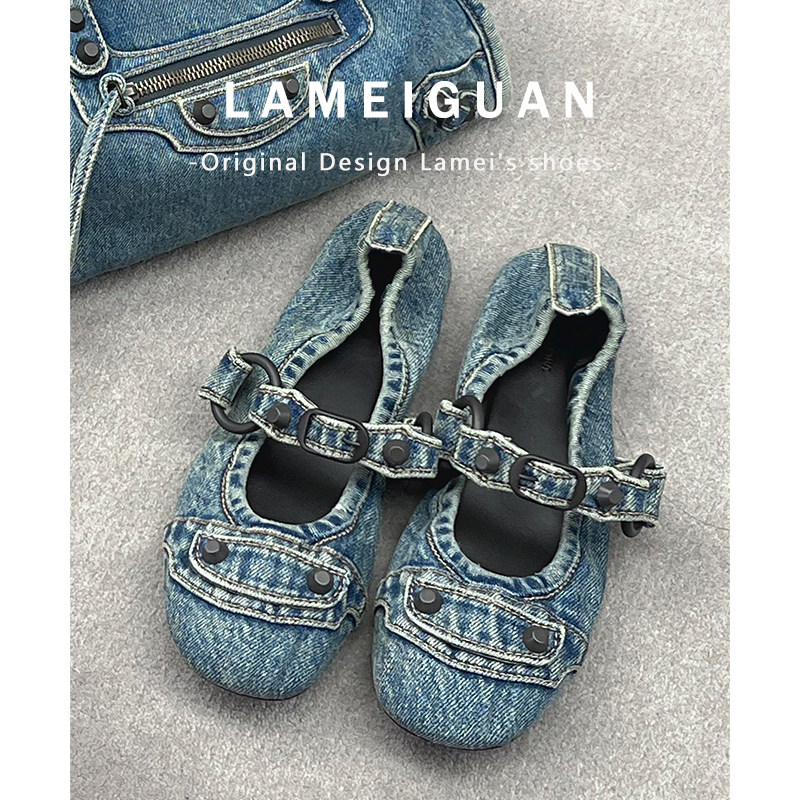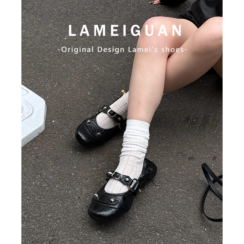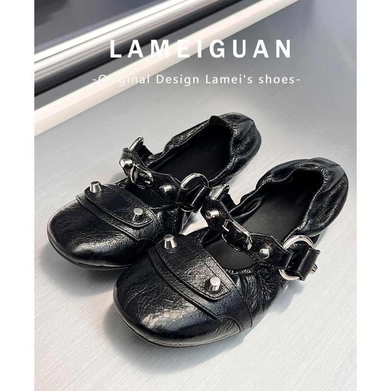 性感红色铆钉浅口芭蕾玛丽珍鞋女春2026新款复古气质圆头平底单鞋