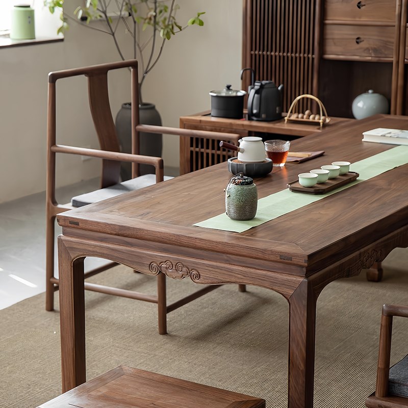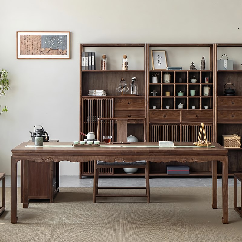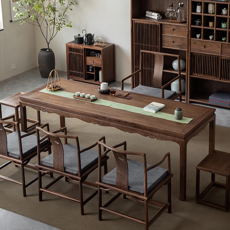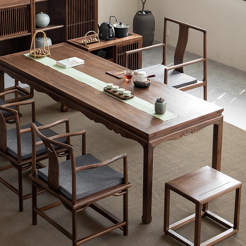 新中式实木茶桌椅组合套装禅意明式黑胡桃木O办公茶台别墅茶室家