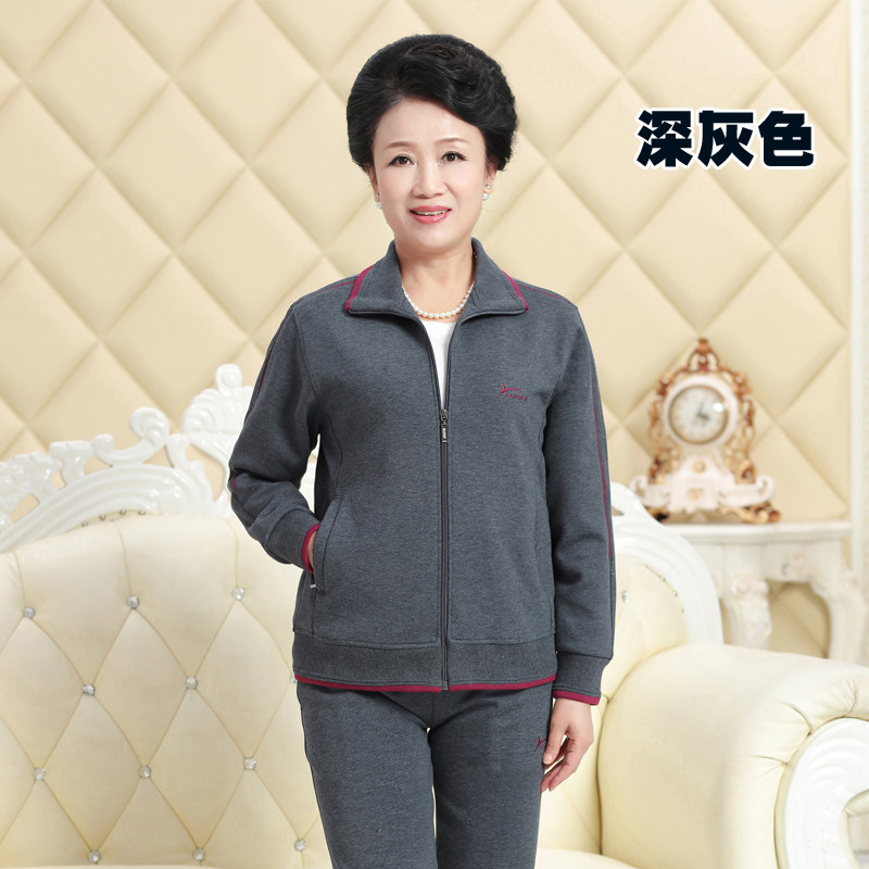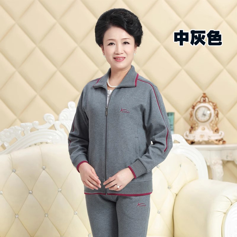鲁美妈妈春秋运动套装女中老年运动服宽松大码母亲运动装休闲跑步