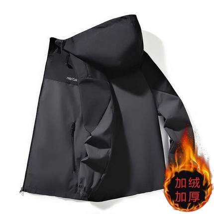 加绒加厚男士外套潮流百搭冬季青年保暖男装夹克休闲宽松连帽上衣
