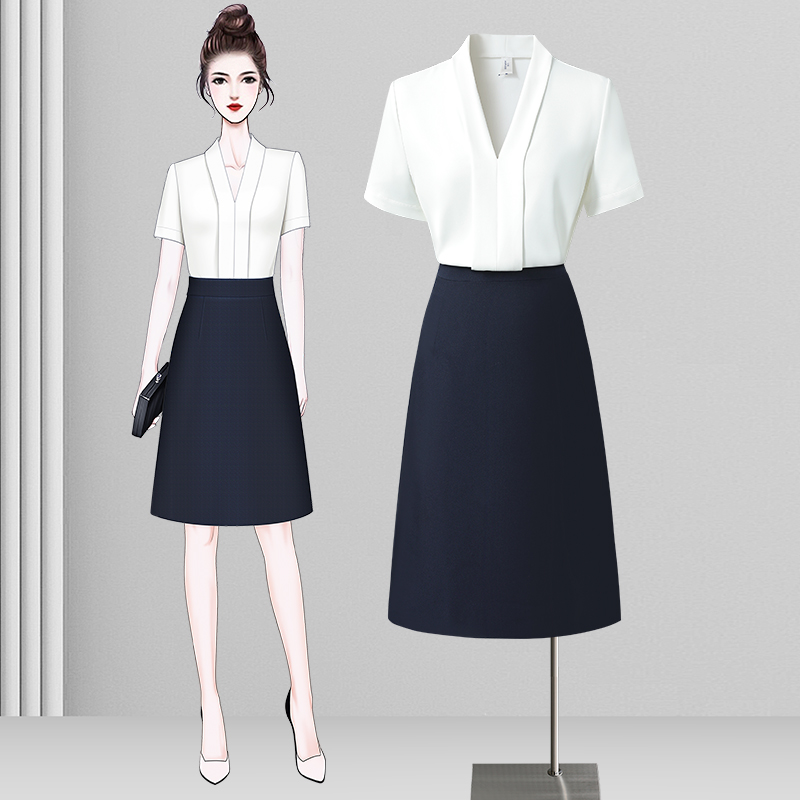 白色衬衫女职业衬衣短袖蓝色高级感通勤正装打底上衣销售工作服夏
