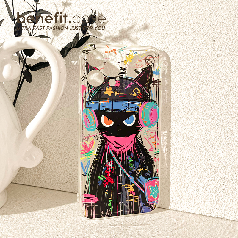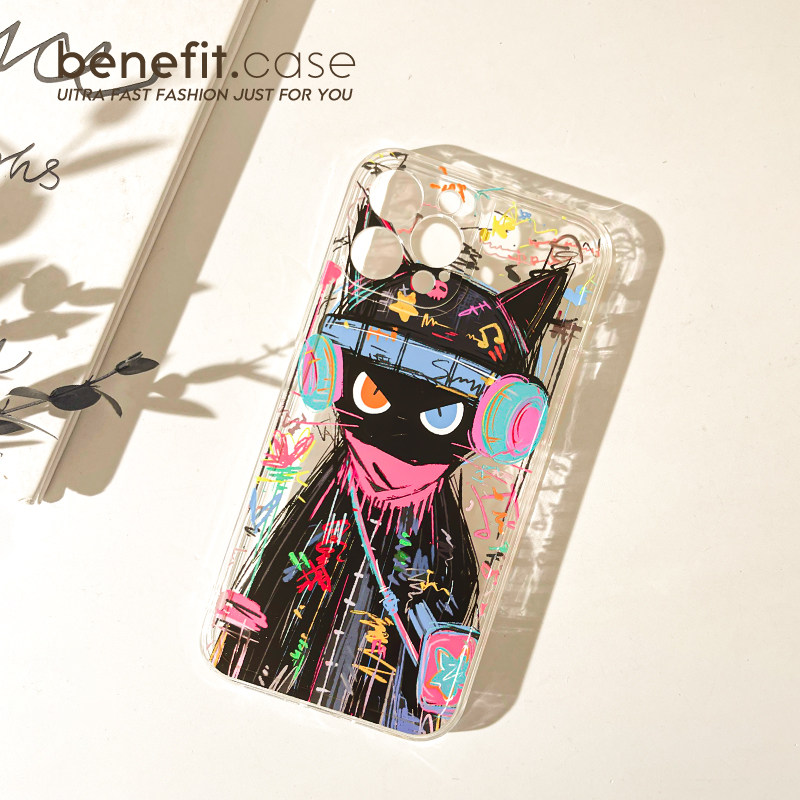 benefit油画小黑猫个性17pro16适用iphone15promax苹果13手机壳14promax新款12套11创意xsmax透明xr硅胶8p7p