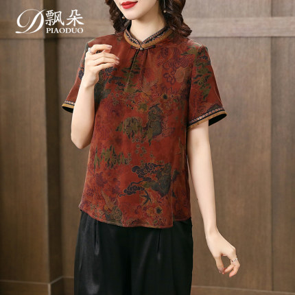 香云纱真丝上衣女2023夏季新款民族风高端小衫桑蚕丝复古气质衬衫