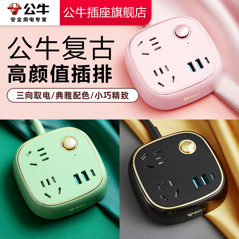 公牛插座官方旗舰店复古排插usb插排插线板家用多功能办公高颜值