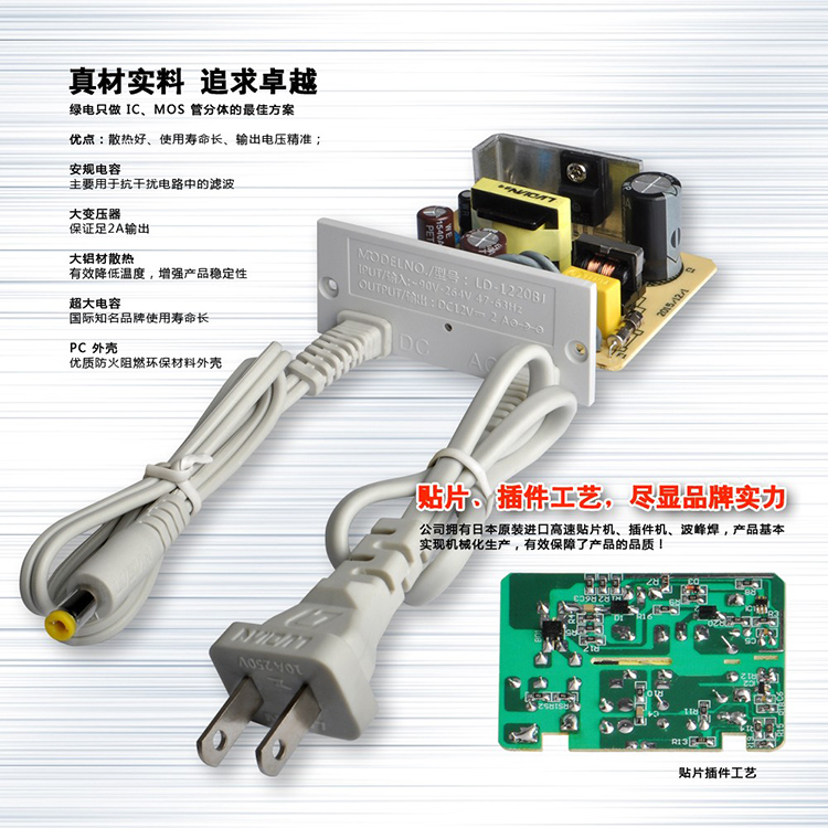 3C认证绿电12V2A监控电源室外防水摄像机开关双线适配器LD-1220BJ