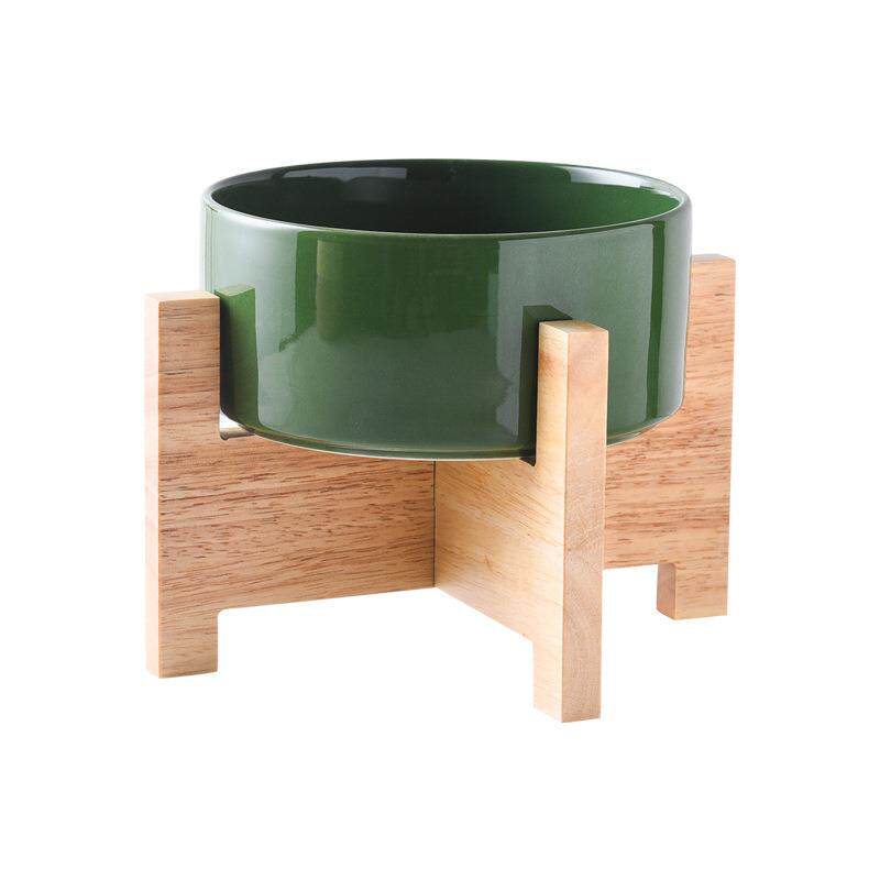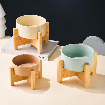 新款创意宠物陶瓷碗大号护颈黑色防打翻木架狗碗猫狗喂食圆形宠物