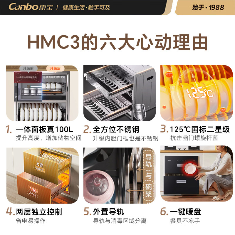 康宝磐石消毒柜嵌入式HMC3家用新款厨房碗筷烘干一体碗柜官方正品