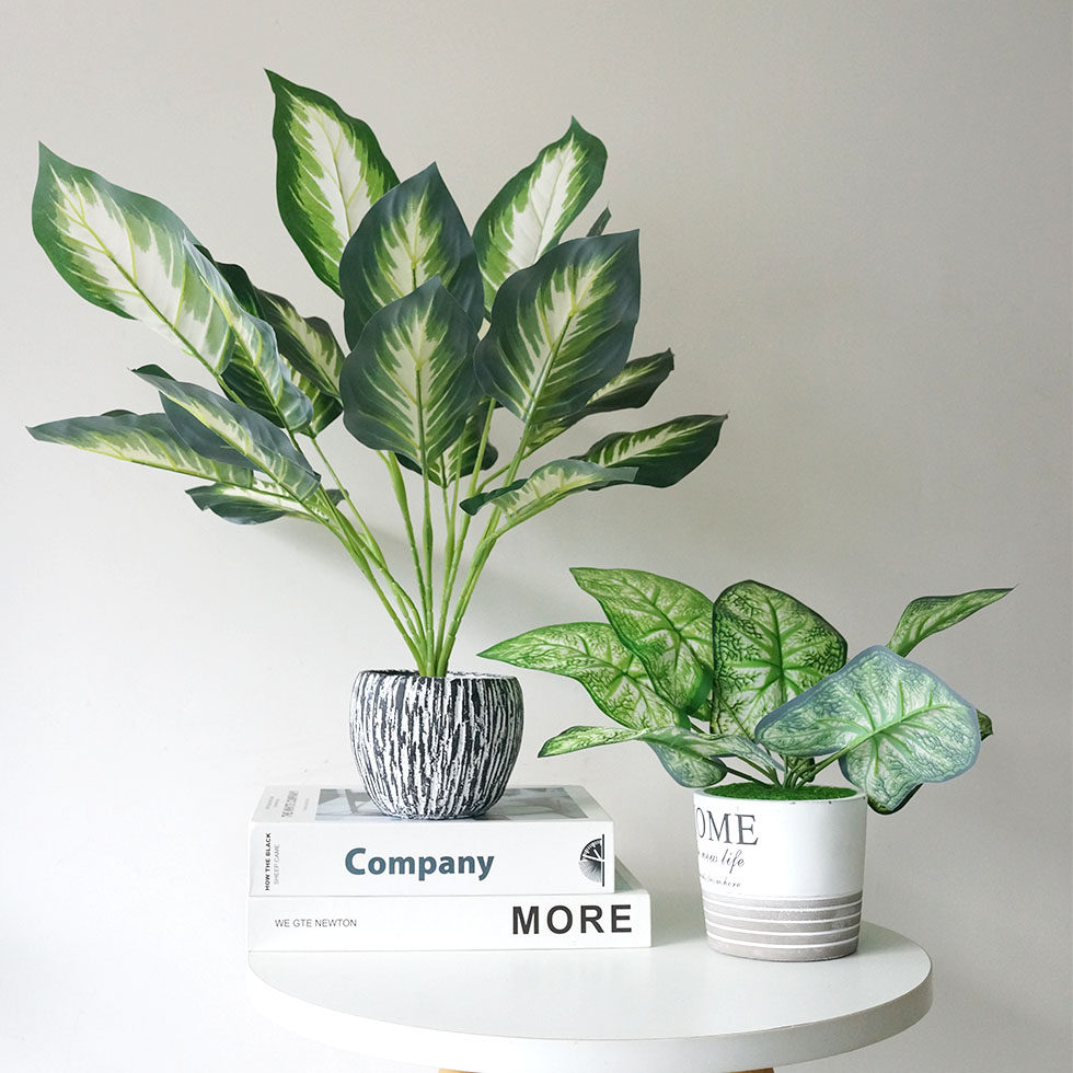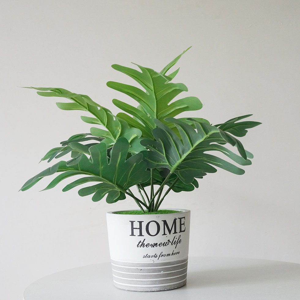 仿真绿植假植物假叶子龟背叶桌摆仿生垂吊阳台造景水泥盆栽装饰