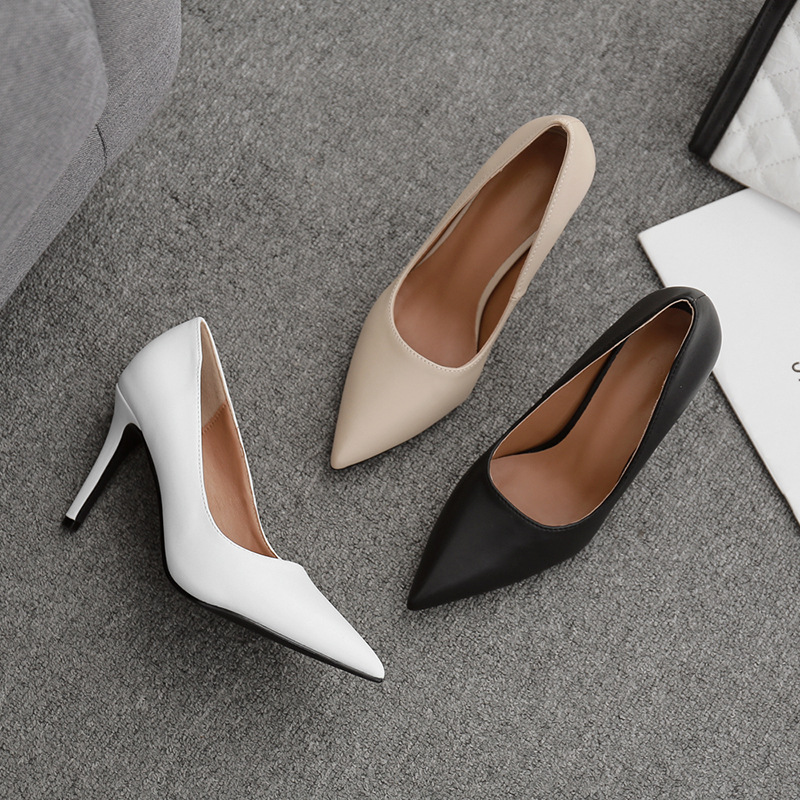 Miss Smile2025新款高跟鞋细跟尖头浅口黑色职业工作鞋女