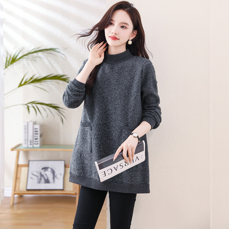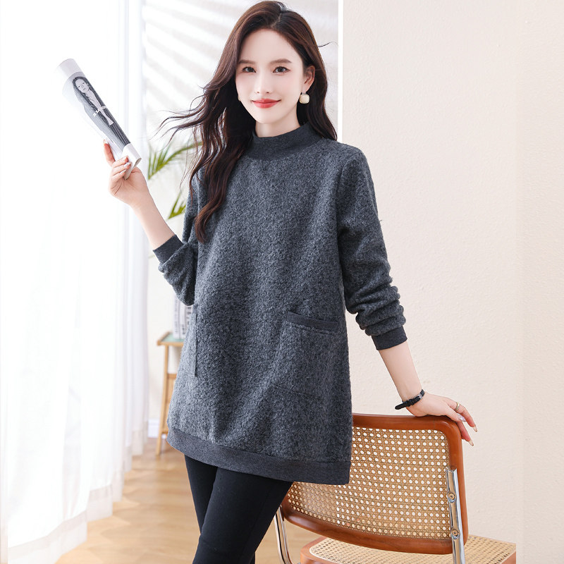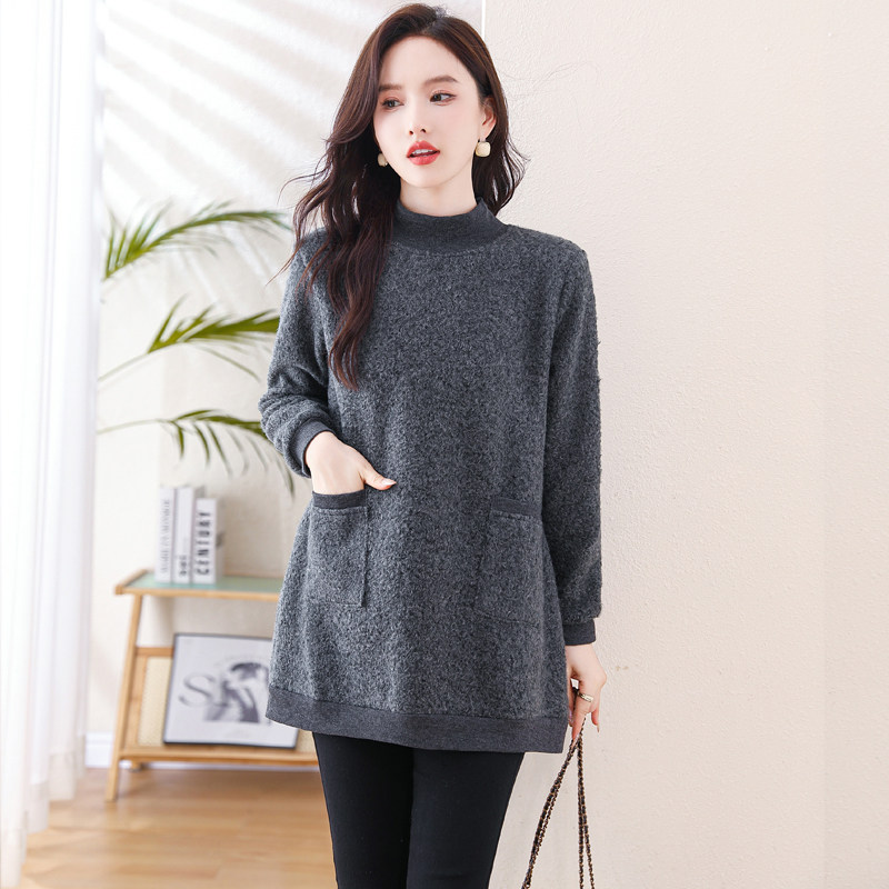 加绒保暖大码女装冬季新款中长款打底衫女半高领显瘦遮肚子女上衣