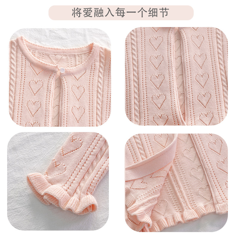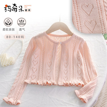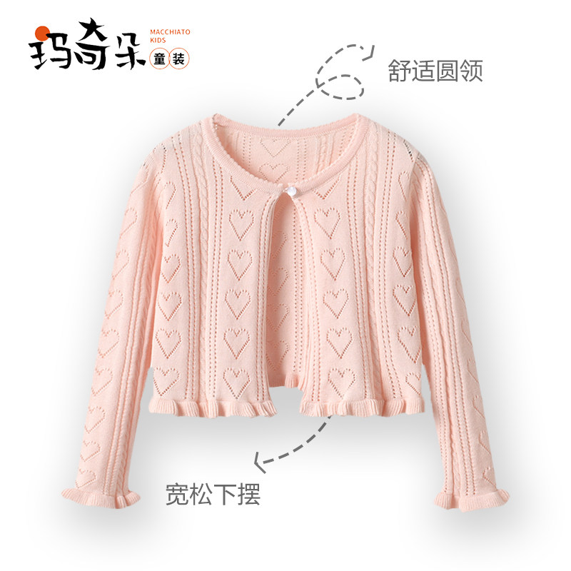 女童纯棉针织防晒外套开衫披肩短款儿童春夏季毛衣宝宝空调衫
