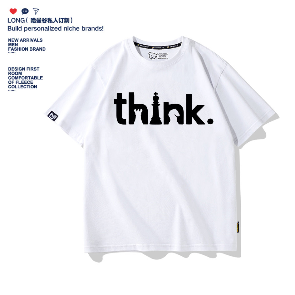 think国际象棋趣味T恤印花短袖纯棉夏卡通男女宽松大码儿童亲子装