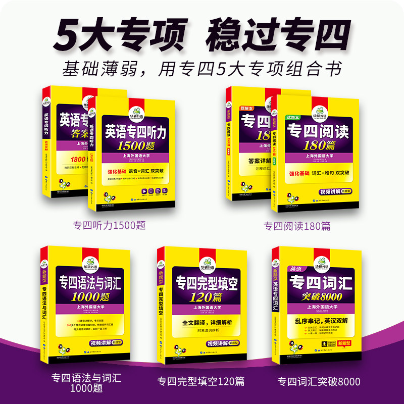 华研外语专四专项训练全套备考2026新题型英语专业四级语法与词汇1000题单词听力阅读理解完形填空完型书tem4历年真题试卷模拟写作