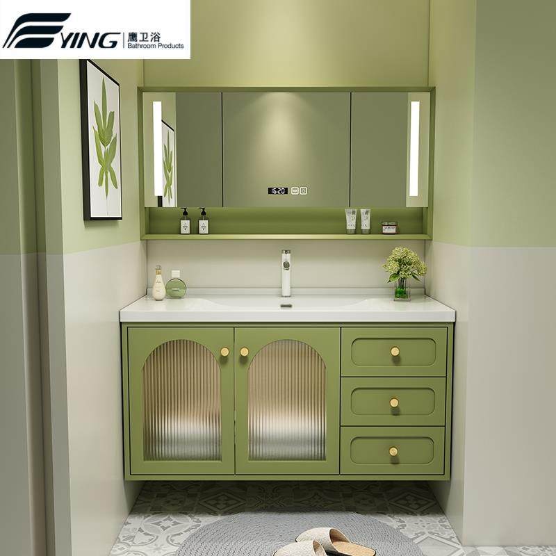 鹰卫浴北欧现代简约网红牛油果绿浴室柜组合洗漱台轻奢洗手池一体