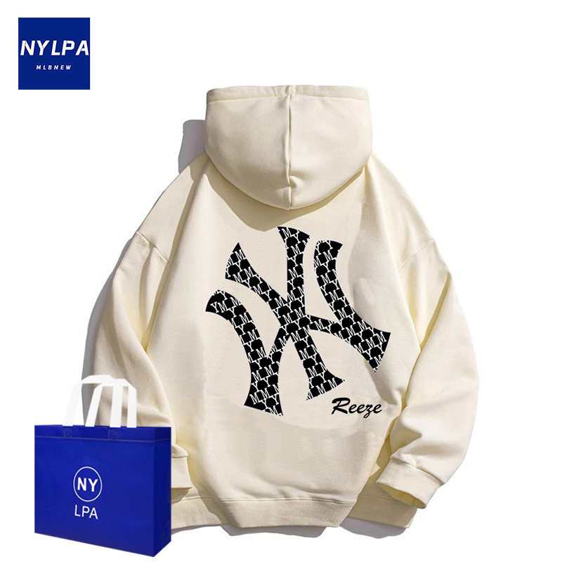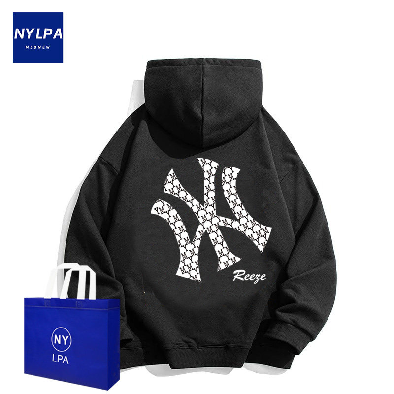 MLB&NY明星同款黑色卫衣男春秋薄款连帽宽松2023新款潮牌纯棉情侣