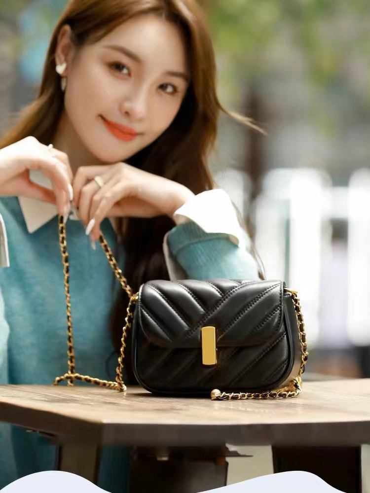 斜挎包小众黑色质感链条包女包