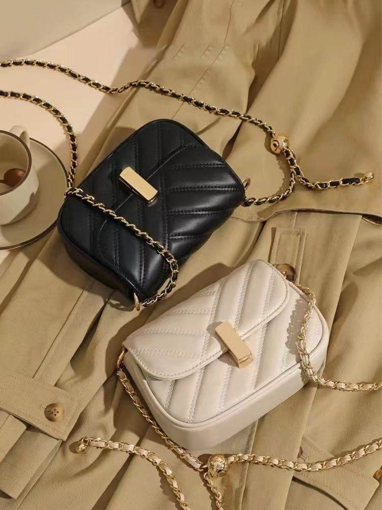 夏季包包女式2024新款女士白色夏天斜挎包小众黑色质感链条包女包