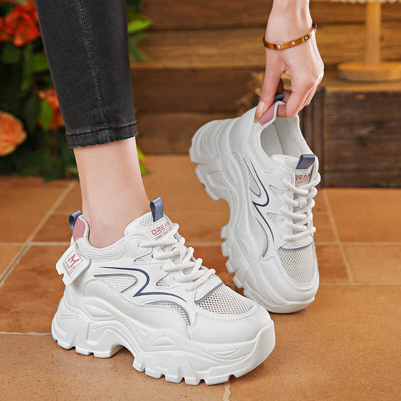 小个子增高老爹鞋女2024夏季网面透气运动鞋厚底小白鞋学生运动鞋