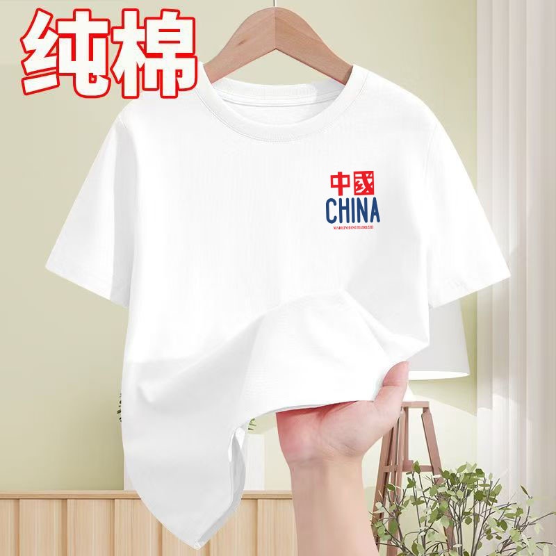 纯棉儿童白色短袖t恤男生2025新款中国风9中大童装六一毕业班服潮
