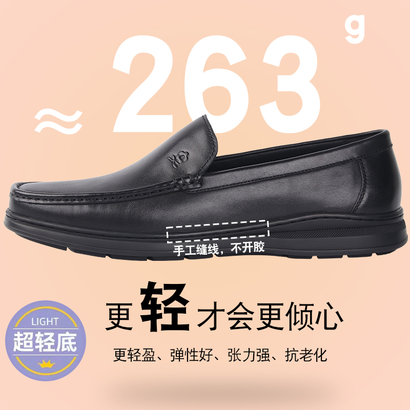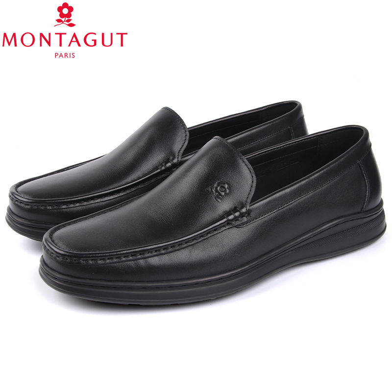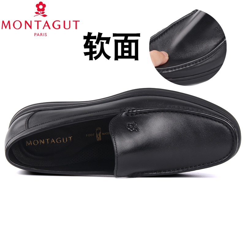 梦特娇男鞋新款一脚蹬软面软底牛皮手工商务休闲小码皮鞋35 36 37