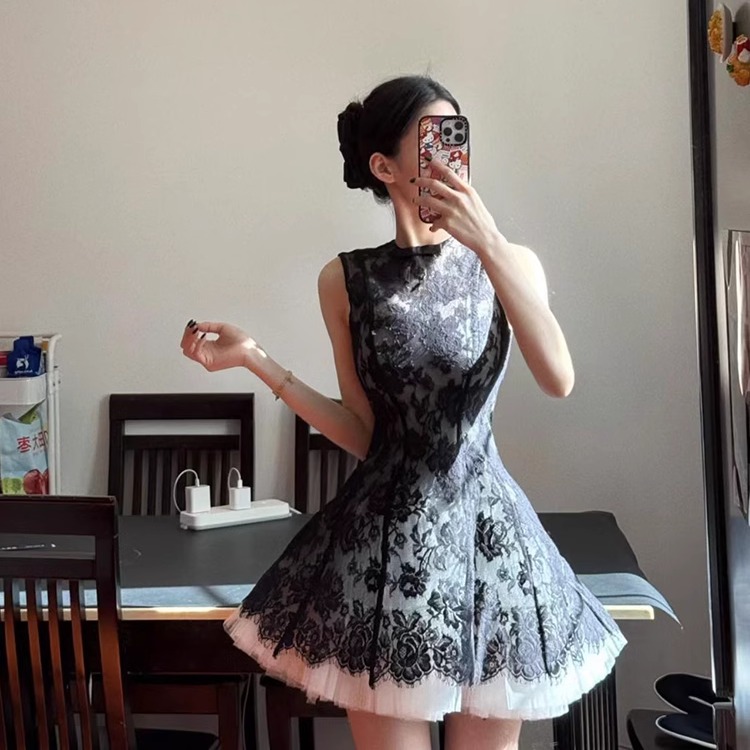 shushu新中式蕾丝拼接蓬蓬裙甜美