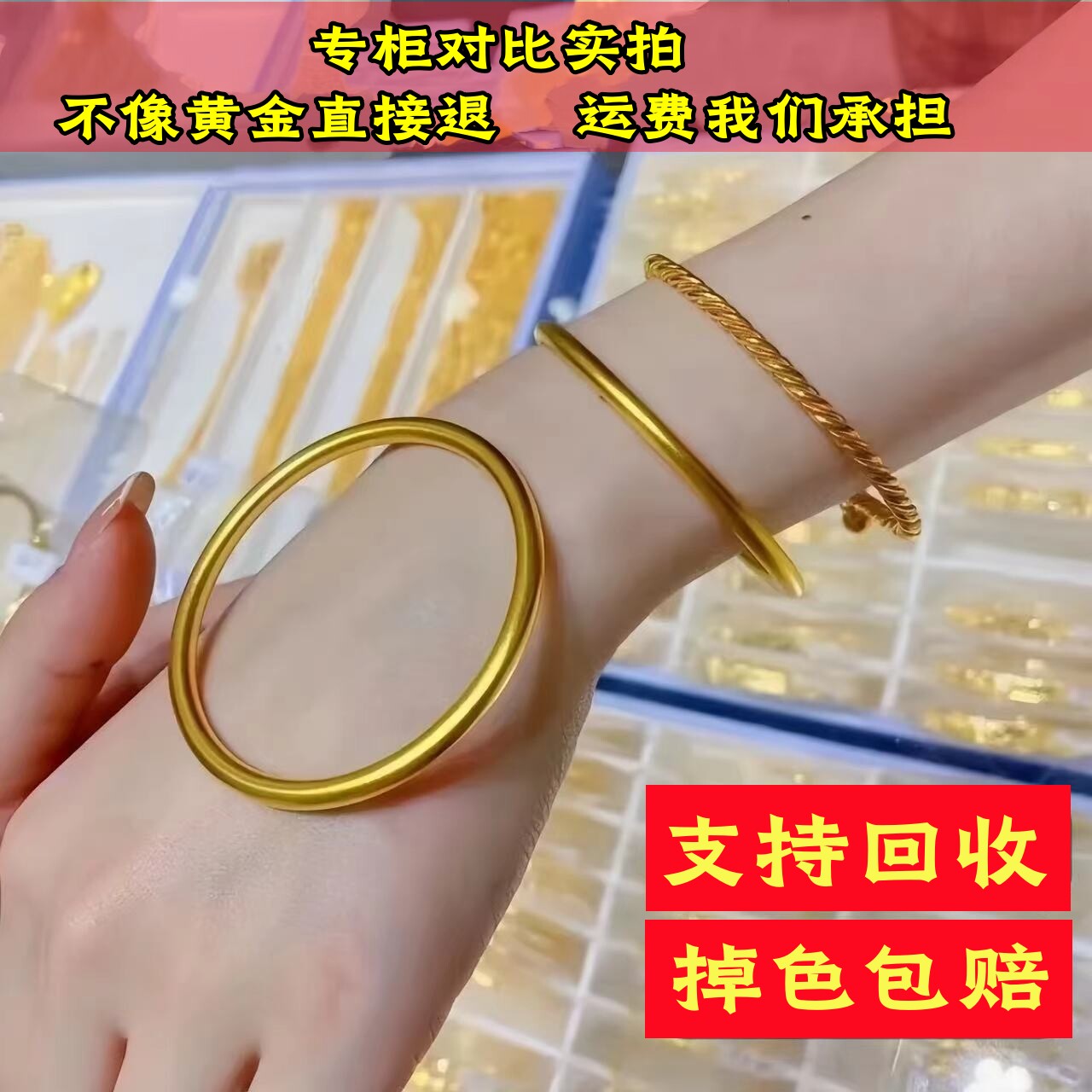 古法黄金手镯仿真越南沙金包银传承实心经镯子锡金结婚首饰不掉色