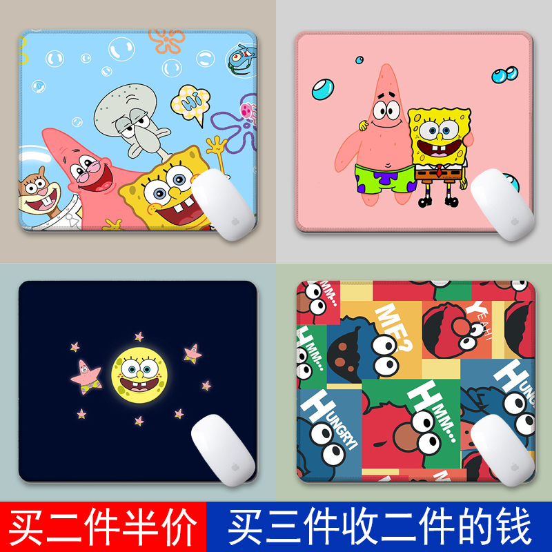 动漫卡通海绵宝宝鼠标垫芝麻街电脑桌垫加厚小号ins风锁边防滑垫